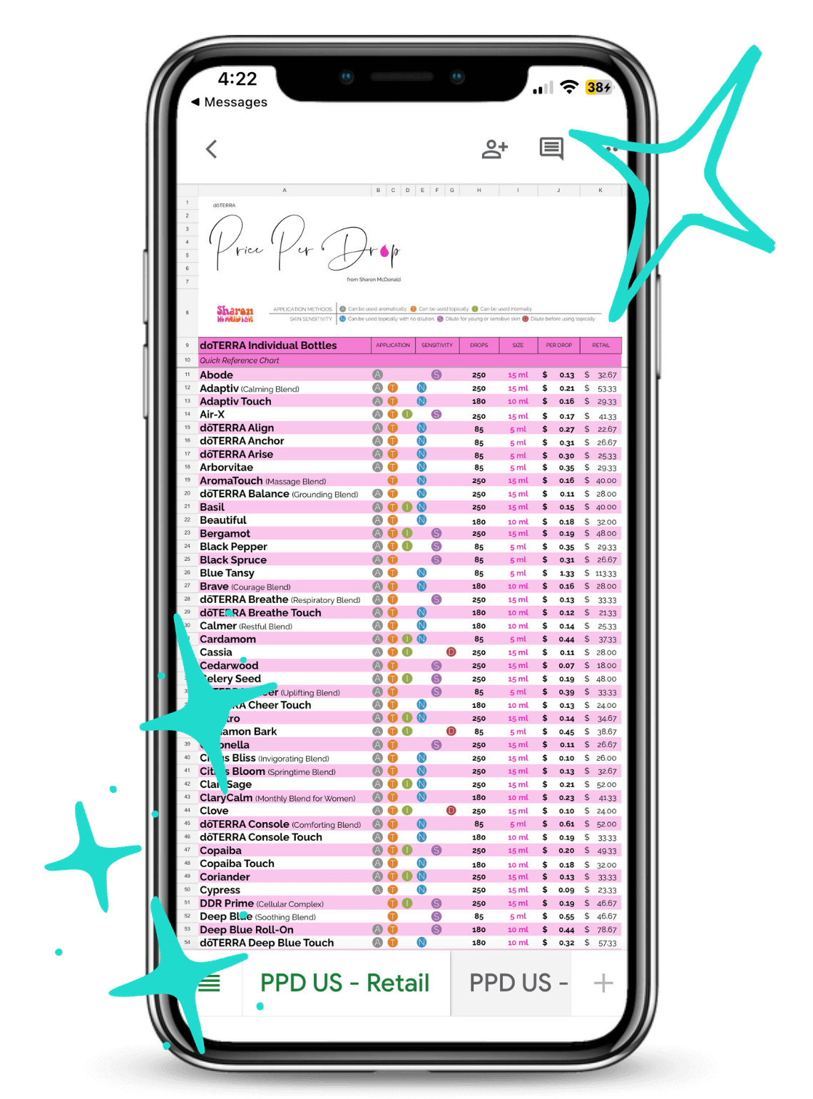Find a how far a bottle can go, one drop at a time! Find the retail and wholesale price of your favorite essential oil and the price per drop for its bottle size to better understand your oil usage.